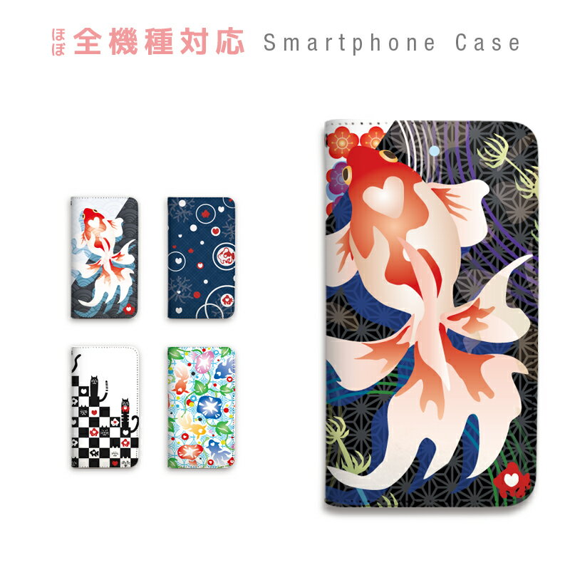 スマホケース 全機種対応 手帳型 携帯ケース ベルトなし マグネットなし 和柄 金魚 猫 ハート チェック スマートフォン ケース iPhone13 Pro Max mini 12 11 SE2 XS XR 8 7 Plus ARROWS Xperia GALAXY BASIO Android One