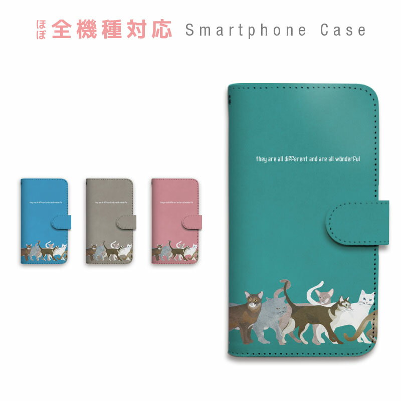 スマホケース 全機種対応 手帳型 携帯ケース 猫 黒猫 白猫 たくさん イラスト かわいい スマートフォン ケース 手帳型ケース iPhone13 mini Pro Max 12 SE2 11 XS XR 8 AQUOS Xperia GALAXY ARROWS Pixel Android One BASIO