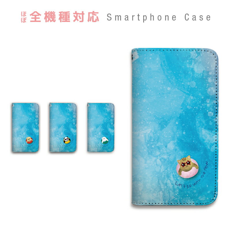 スマホケース 全機種対応 手帳型 携帯ケース ベルトなし マグネットなし 猫 犬 パンダ あざらし 海 夏 マリン ビーチ 水彩 かわいい スマートフォン ケース iPhone12 mini Pro Max SE 11 Pro XS XR X 8 7 Xperia XZ3 XZ2 XZ1 AQUOS sense R2 GALAXY S9 ARROWS BASIO3
