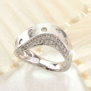 地金のカーブした曲面が美しいカーブパヴェダイヤモンドリング。