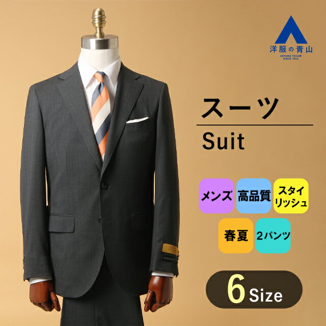 【洋服の青山】 春夏用 グレー系 プレミアムスタイリッシュ スーツ【ツーパンツ】【Super110's】 メンズ 2ボタン ノータック 春 夏 HILTON 014