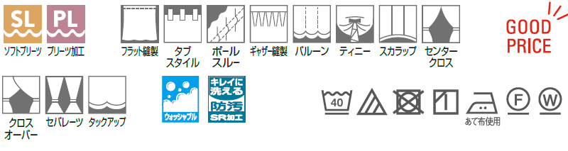 SL ソフトプリーツ加工[形態安定加工]カーテンの裾の広がりを抑える加工を施した縫製仕様です。