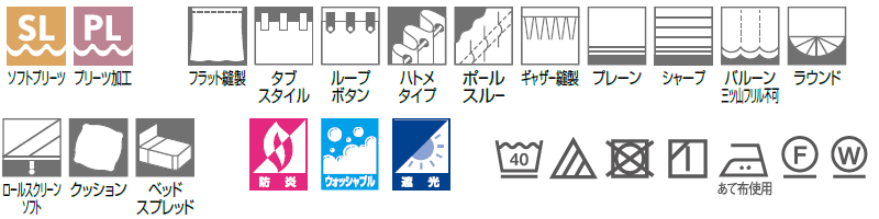 SL ソフトプリーツ加工[形態安定加工]カーテンの裾の広がりを抑える加工を施した縫製仕様です。