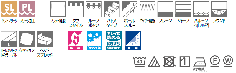 SL ソフトプリーツ加工[形態安定加工]カーテンの裾の広がりを抑える加工を施した縫製仕様です。
