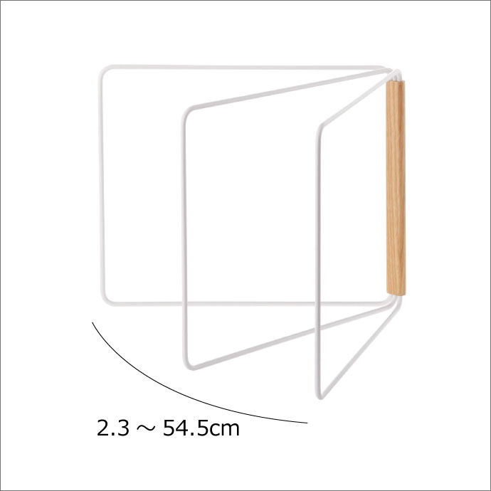 商品詳細 ■サイズ:幅27.5〜53.5cm×奥行2.3〜54.5cm×高さ25cm ■素材 本体:スチール(ユニクロメッキ+粉体塗装) 木棒:天然木 スタッフコメント もう布巾ハンガーの置き場に困りません。