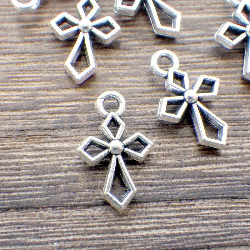 ミニミニメタルチャーム 1個十字架クロス型アクセサリーチャームメタルパーツ15mm×9mm